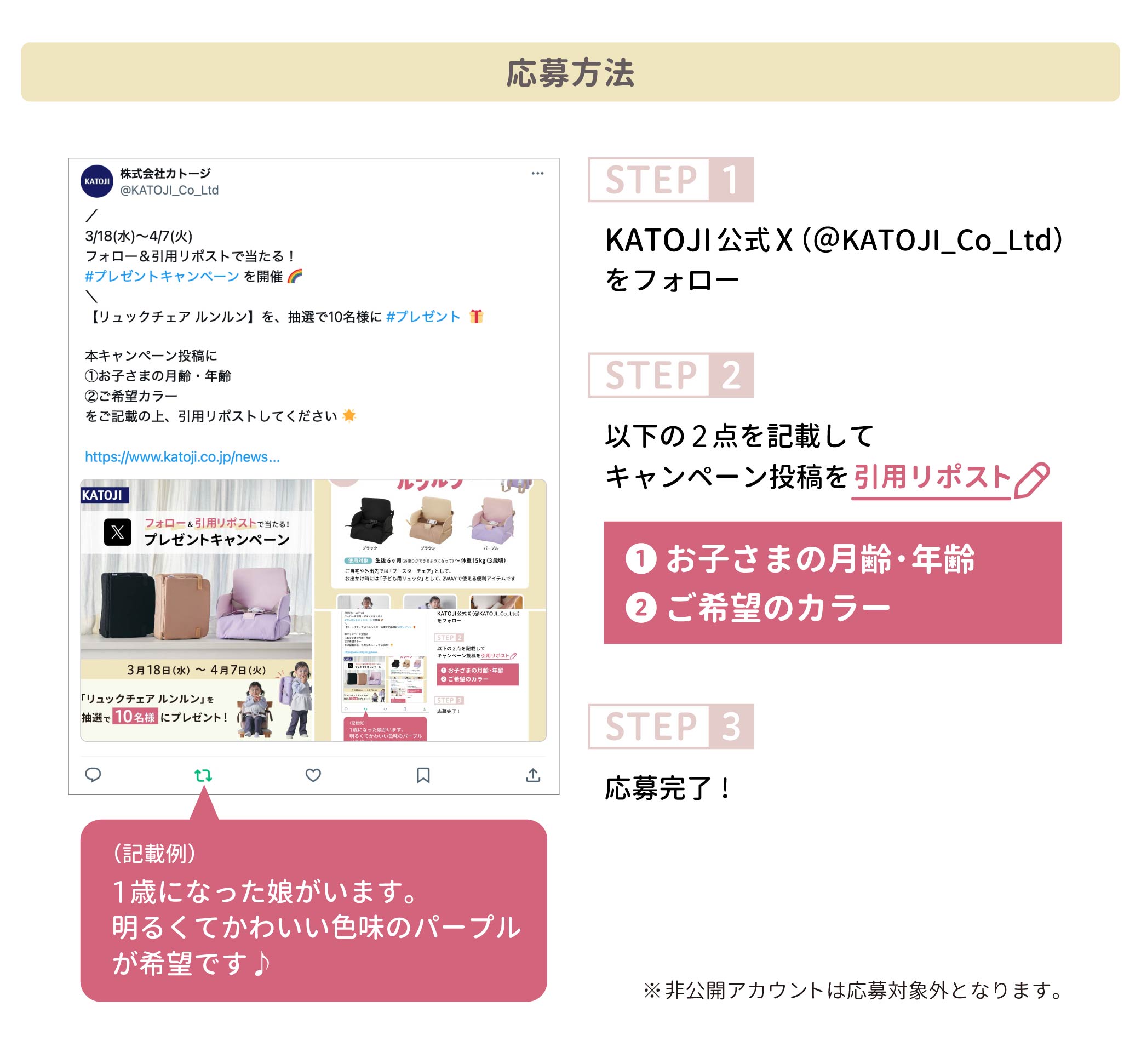 KATOJI公式Xにて、『リュックチェア ルンルン』が10名様に当たる【プレゼントキャンペーン】を開催♪