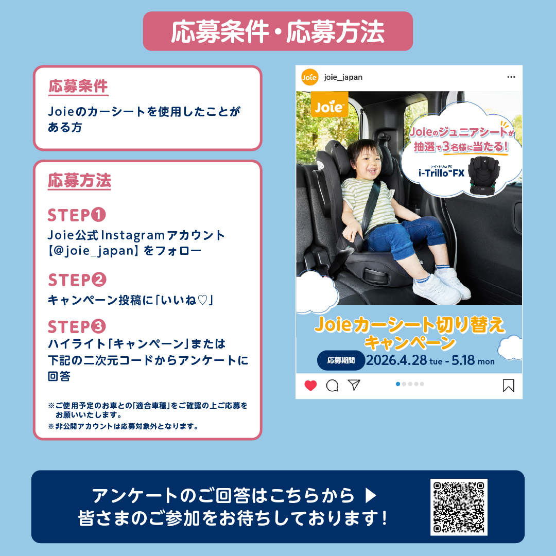 Joie公式Instagramにて【Joie カーシート切り替えキャンペーン】を開催★