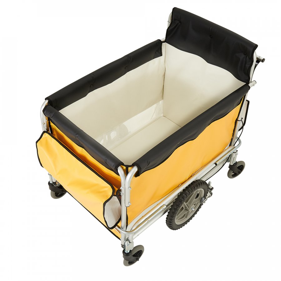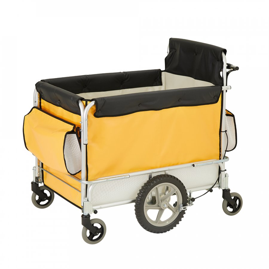 機能・その他 | ・4~6人乗り 耐荷重:60kg ・シンプルな立ち乗りおさんぽ車です。 ・防炎シート ・汚れてもお手入れ簡単なシート(水拭き可) ・ノーパンクタイヤを標準装備 ・中央大車輪方式採用で、軽快な押し心地、前後は360度キャスター付き車輪で小回りが抜群です。 ・中央大車輪は、ベアリング車輪で地面からの衝撃を吸収します。 ・ロック機能付きハンドブレーキで安全です。 ・アルミフレーム使用(アルマイト仕上) ・前後に大きなポケット付 ※折りたたみは出来ません。 |