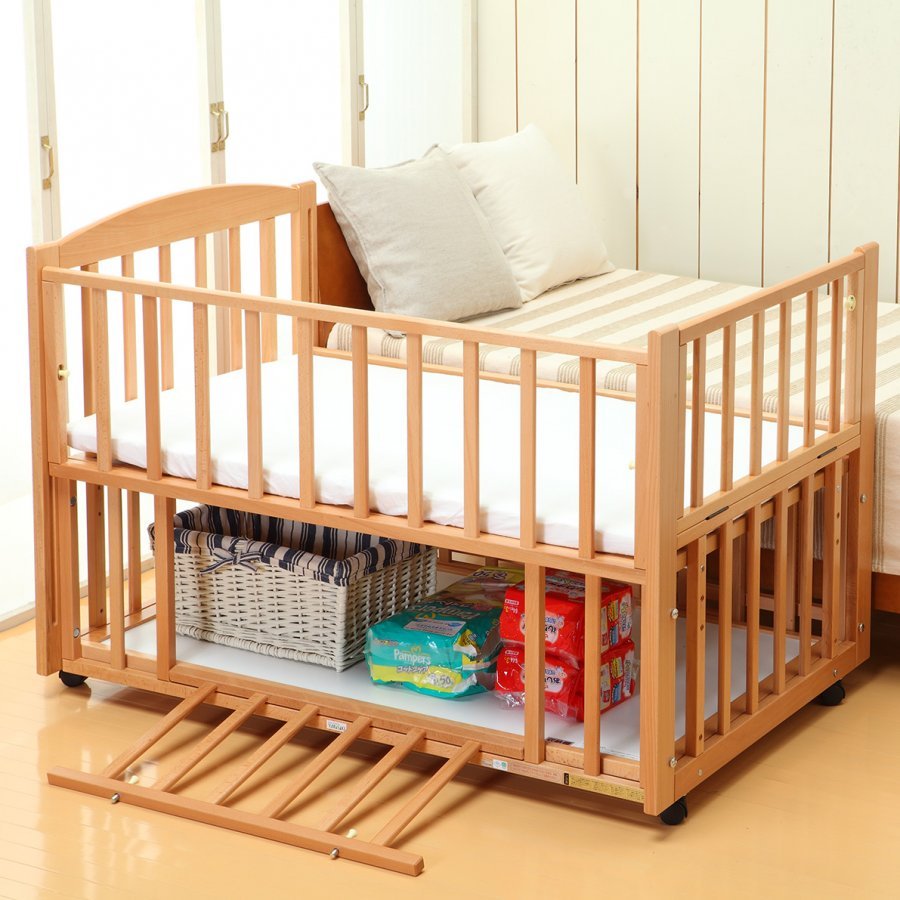 日本製 スリーオープンベビーベッド b-sideDX(ナチュラル)