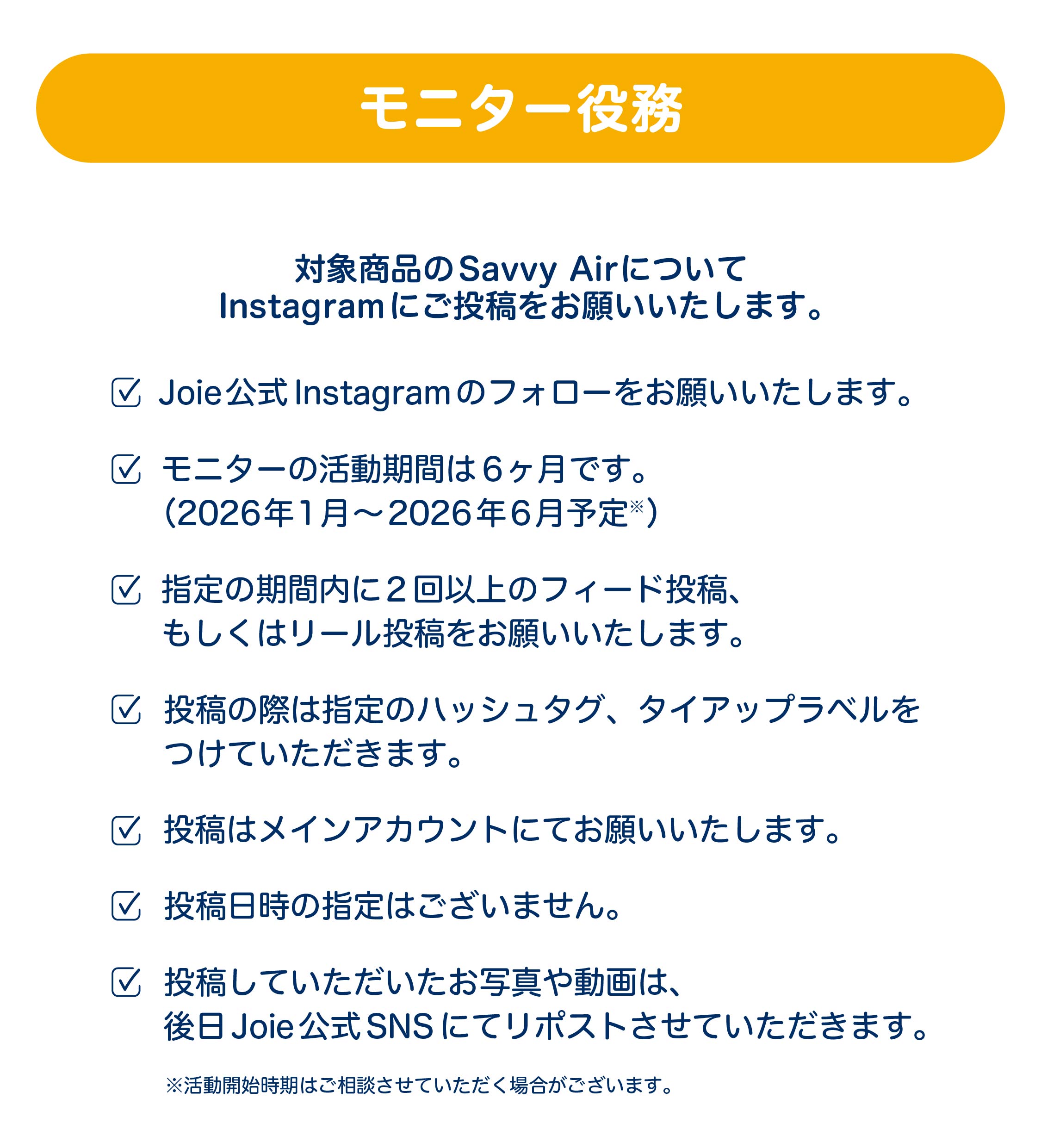Joie公式インスタグラムにて『Savvy Airモニター募集キャンペーン 第2弾』を開催します!