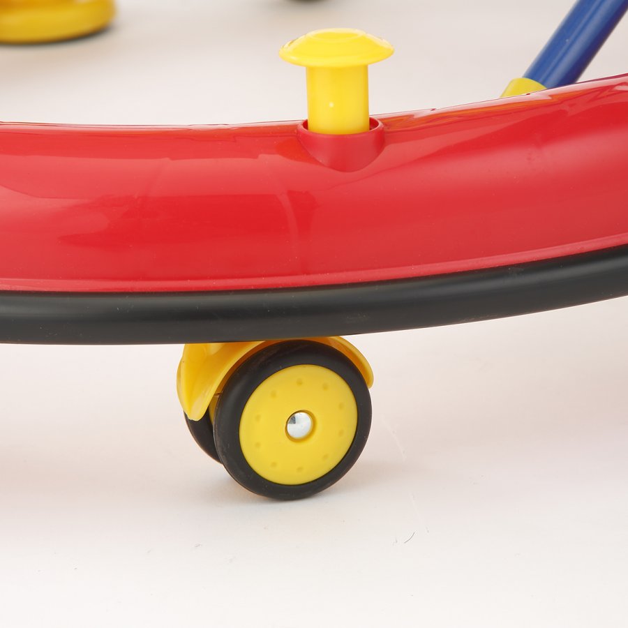 | 機能・その他 | ・3段階高さ調節(床からテーブ上部までの高さ:上41.5、中40、下38.5cm。床からテーブル下部までの高さ:上37、中35.5、下34cm。床からシート股部までの高さ:上27、中25.5、下24cm) ・消音キャスター(ゴム車輪)で8ケ付き。硬いが取外し可。 ・トイトレーは取付式、オン・オフ機能付き。単三電池2本(別売)使用。メロディ機能あり。 ・リング外周にソフトバンパー付きで壁や家具に傷を付けにくい。 ・ストッパー付き(説明書参照) |