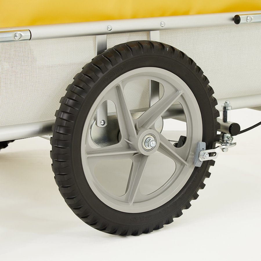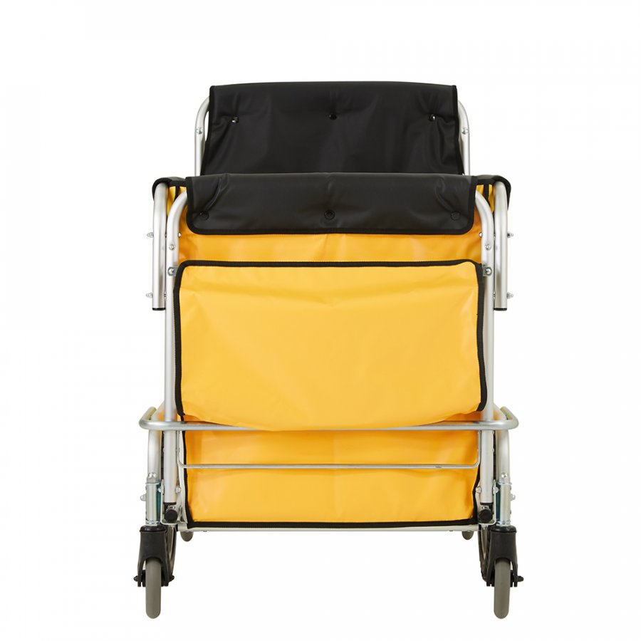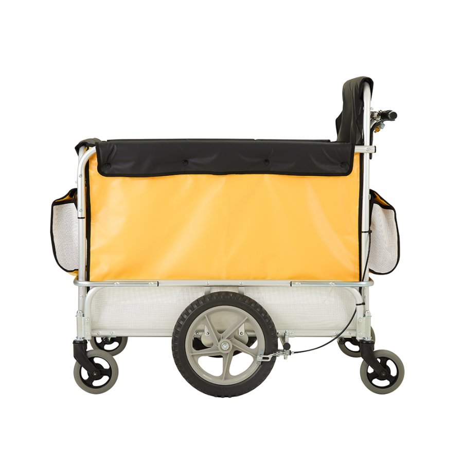 機能・その他 | ・4~6人乗り 耐荷重:60kg ・シンプルな立ち乗りおさんぽ車です。 ・防炎シート ・汚れてもお手入れ簡単なシート(水拭き可) ・ノーパンクタイヤを標準装備 ・中央大車輪方式採用で、軽快な押し心地、前後は360度キャスター付き車輪で小回りが抜群です。 ・中央大車輪は、ベアリング車輪で地面からの衝撃を吸収します。 ・ロック機能付きハンドブレーキで安全です。 ・アルミフレーム使用(アルマイト仕上) ・前後に大きなポケット付 ※折りたたみは出来ません。 |